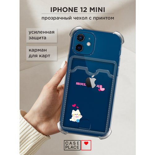 Чехол на Apple iPhone 12 mini (Айфон 12 Мини) с картой и принтом Корейский котик