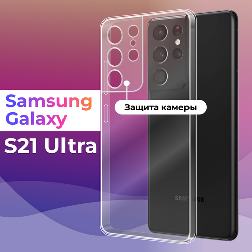 Силиконовый чехол для Samsung Galaxy S21 Ultra с защитой камеры / Самсунг Галакси С21 Ультра, прозрачный, защитный