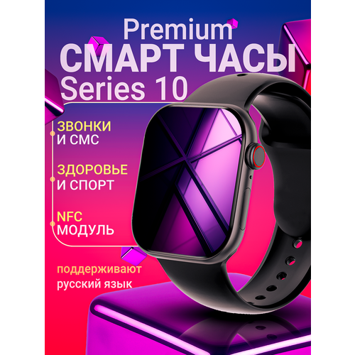 Умные часы с AMOLED-дисплеем 1.85" 42мм, ЭКГ, NFC, пульсометром, совместимы с Android и iOS, smart watch, черные