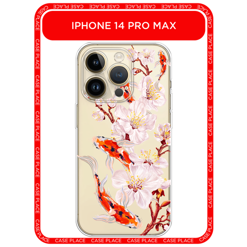 Чехол на Apple iPhone 14 Pro Max / Айфон 14 Про Макс с принтом Карпы и сакура, прозрачный