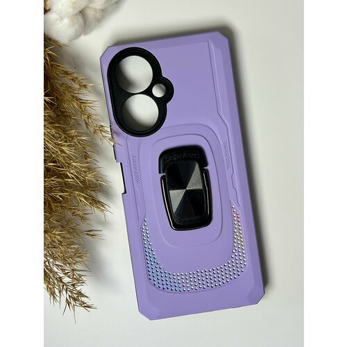 Чехол противоударный для Tecno Camon 19/19 Pro (Техно Камон 19/19 Про)с функцией подставки, с кольцом-держателем, ударопрочный, усиленный, сиреневый