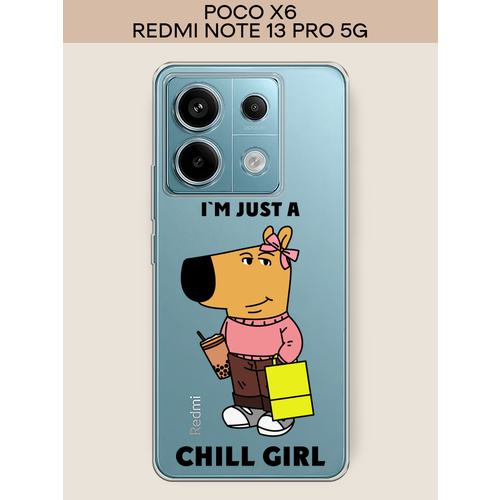 Силиконовый чехол "Just a chill girl 1" на Xiaomi Poco X6 / Поко X6, прозрачный