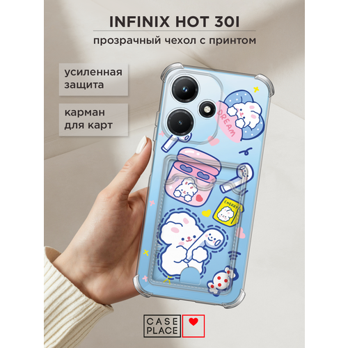 Чехол на Infinix Hot 30i (Инфиникс Хот 30i) с картой и принтом Мишка с наушником в корейском стиле