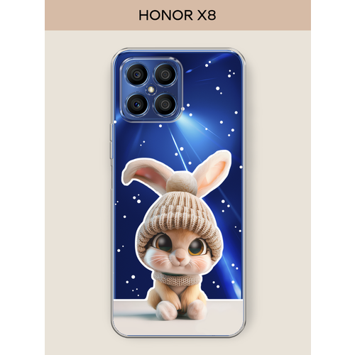 Силиконовый чехол "Крольчонок в вязаной шапке 2" на Honor X8 / Хонор Х8, прозрачный