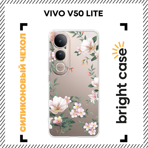 Чехол на Vivo V50 lite / Виво В50 Лайт с принтом С цветами белыми, прозрачный