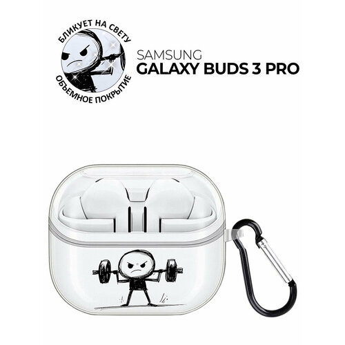 Чехол на Samsung Galaxy Buds 3 pro с принтом "Штангист" прозрачный