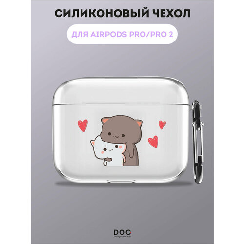 Силиконовый чехол DesignOnCase на AirPods Pro/Pro 2, с карабином, глянцевый, с принтом Коты обнимаются, сердечки
