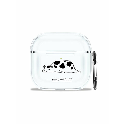 Силиконовый чехол DesignOnCase для беспроводных наушников AirPods 4, с карабином, глянцевый, mooooody