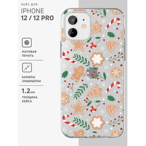 Чехол на iPhone 12, Айфон 12 / iPhone 12 Pro, Айфон 12 Про тонкий прозрачный с принтом "Gingerbread pattern"