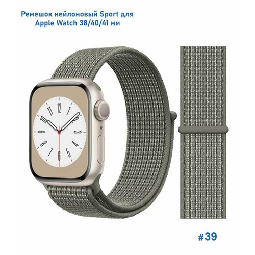 Ремешок нейлоновый Sport для Apple Watch 38/40/41 мм, на липучке, серо-зеленый (39)