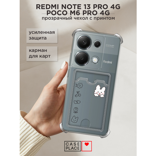 Чехол на Xiaomi Redmi Note 13 Pro 4G/POCO M6 Pro 4G (Сяоми Редми Нот 13 Про 4G/Поко М6 Про 4G) с картой и принтом Пушистый белый зайчик