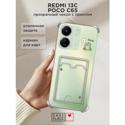 Чехол на Xiaomi Redmi 13C/Poco C65 (Сяоми Редми 13C/Поко С65) с картой и принтом Динозавр и пчёлки