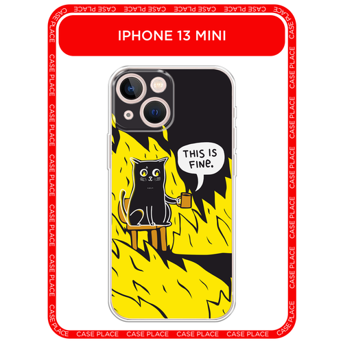 Чехол на Apple iPhone 13 mini / Айфон 13 мини с принтом This is fine cat