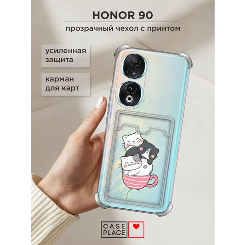 Чехол на Honor 90 (Хонор 90) с картой и принтом Коты в чашке