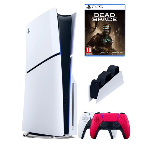 PS5 (ПС5) Игровая приставка Sony PlayStation 5 Slim + 2-й геймпад ( красный) + зарядное+ игра Dead Spase, 1000ГБ