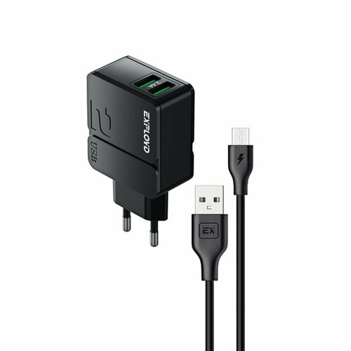 Exployd Сетевое зарядное устройство Exployd EX-Z-1436, 2 USB, 2.4 А, кабель microUSB, черное