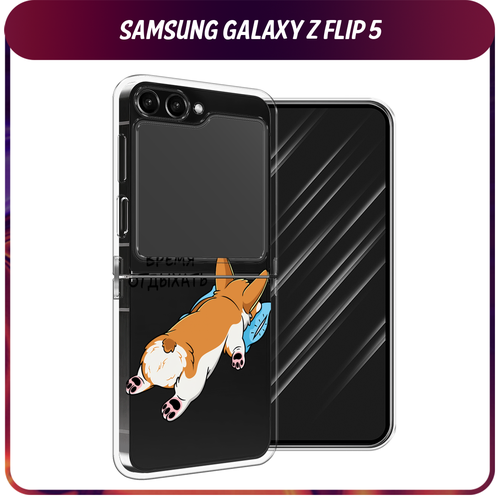 Чехол на Samsung Galaxy Z Flip 5 / Самсунг Z Flip 5 с принтом Корги отдыхает, прозрачный