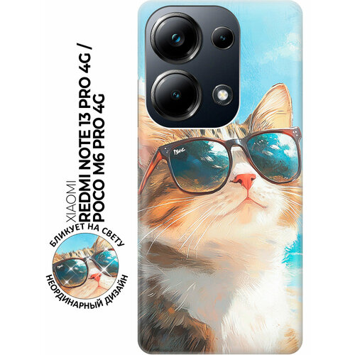 Силиконовый чехол на Xiaomi Redmi Note 13 Pro 4G / Poco M6 Pro 4G с принтом "Котик в очках"