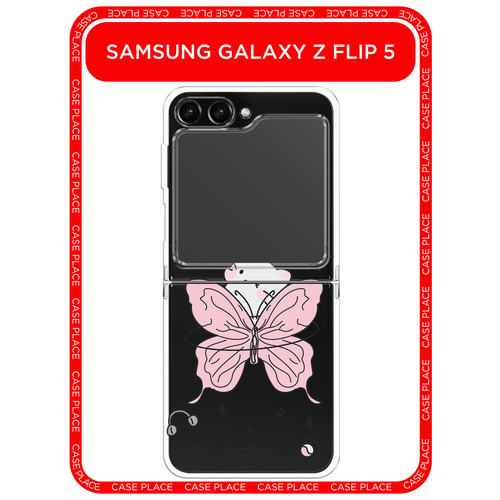 Чехол на Samsung Galaxy Z Flip 5 / Самсунг Z Flip 5 с принтом Полет бабочек, прозрачный