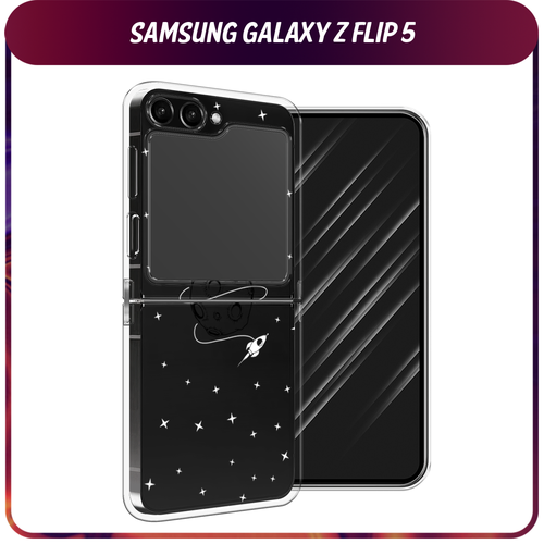 Чехол на Samsung Galaxy Z Flip 5 / Самсунг Z Flip 5 с принтом Полет вокруг луны, прозрачный
