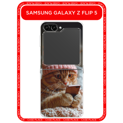 Чехол на Samsung Galaxy Z Flip 5 / Самсунг Z Flip 5 с принтом Рыжий котик с телефоном