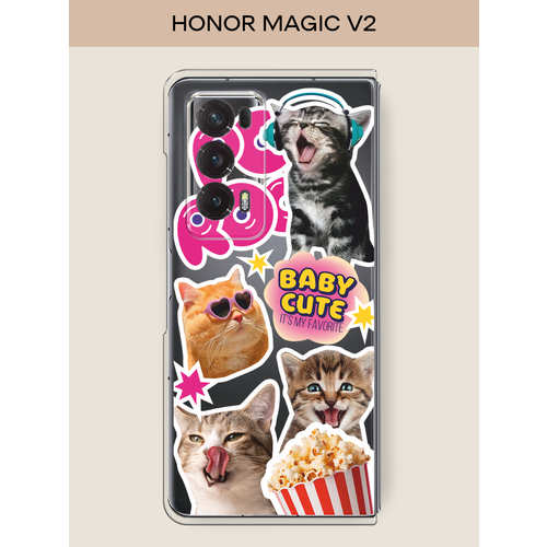Чехол на Honor Magic V2 / Хонор Меджик V2 с принтом Popcorn cats, прозрачный
