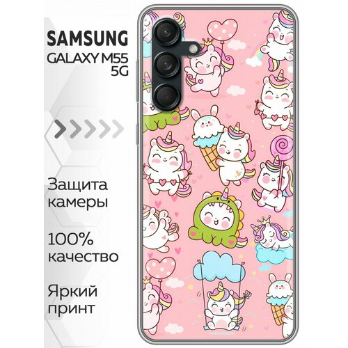 Чехол для Samsung Galaxy M55 с принтом Единороги (Самсунг Галакси М55)