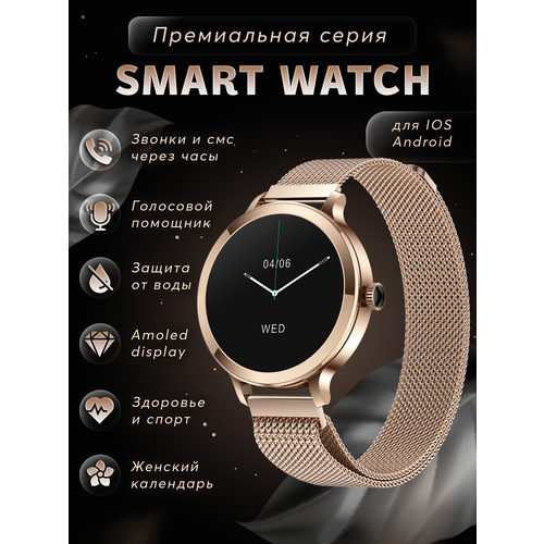 Смарт часы женские круглые smart watch, умные часы наручные с функцией звонка для IOS, Android