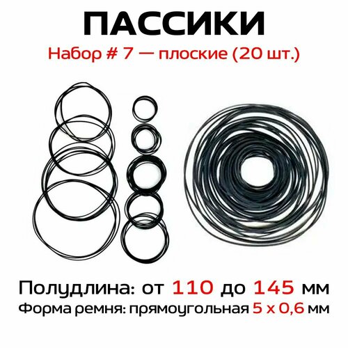 Пассики Набор № 7 плоские (20 шт.) (5 x 0,6 мм)/ для ремонта видеотехники