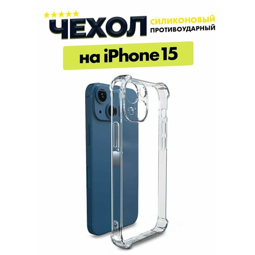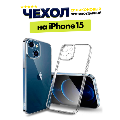 Чехол прозрачный противоударный с защитой камеры для iPhone 15 ( на айфон 15 ) силиконовый