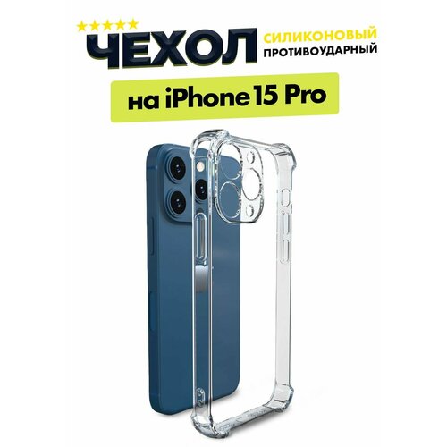 Чехол прозрачный противоударный с защитой камеры для iPhone 15 Pro ( айфон 15 про ) силиконовый