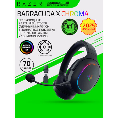 Игровые наушники Razer Barracuda X Chroma (Black) Беспроводные и проводные, 2.4ГГц, Bluetooth, USB, RGB подсветка, 7.1 Surround Sound, полноразмерные, кардиоидный микрофон