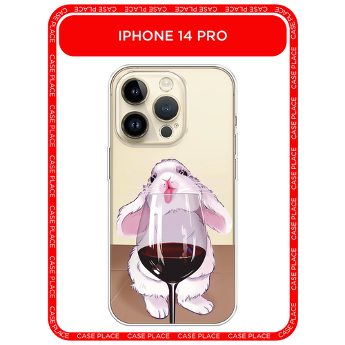 Чехол на Apple iPhone 14 Pro / Айфон 14 Про с принтом Кролик облизывает бокал, прозрачный