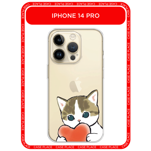 Чехол на Apple iPhone 14 Pro / Айфон 14 Про с принтом Котик с сердечком, прозрачный