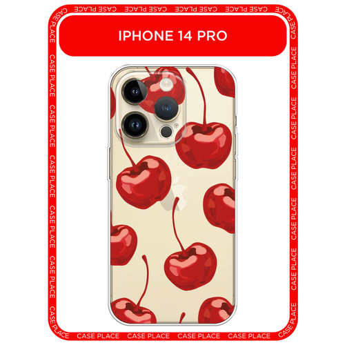 Чехол на Apple iPhone 14 Pro / Айфон 14 Про с принтом Алая вишня, прозрачный