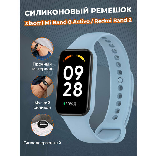 Cиликоновый ремешок для Xiaomi Mi Band 8 Active / Redmi Band 2, небесно-голубой