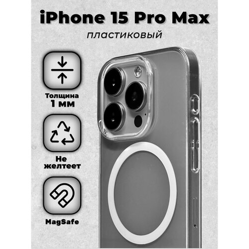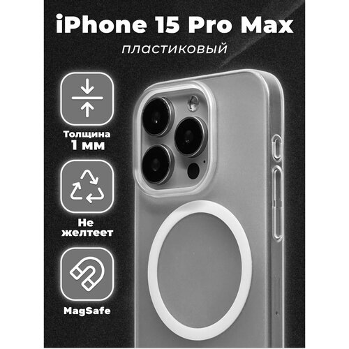 Пластиковый тонкий чехол на Айфон 15 Про Макс / iPhone 15 Pro Max MagSafe ультратонкий толщиной 1 мм, прозрачный, глянцевый