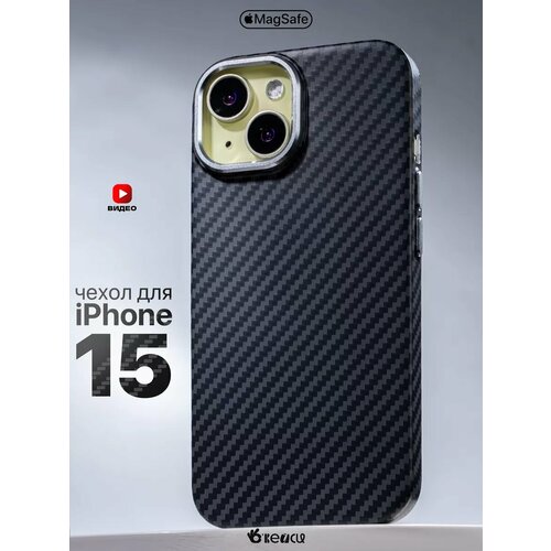 Чехол О'кейси, для iPhone 15, MagSafe, карбоновый, защита камеры, чёрный
