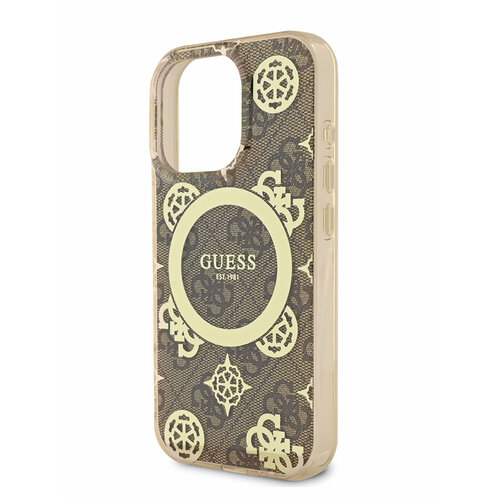Guess для iPhone 16 Pro чехол PC/TPU 4G Peony Hard Brown (MagSafe)