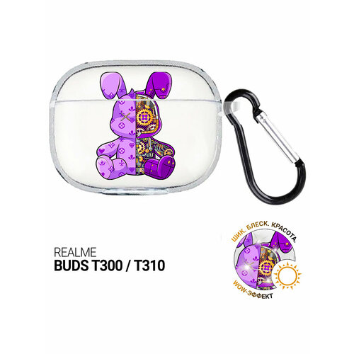 Чехол на Realme Buds T300 / T310 с принтом "Сиреневый Кролик с механизмом" прозрачный