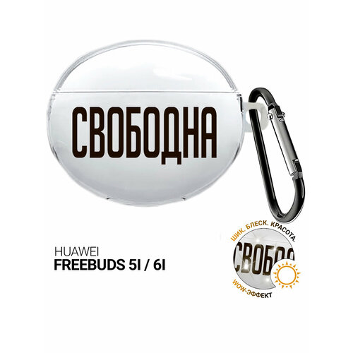 Чехол на Huawei FreeBuds 5i / 6i с принтом "Free" прозрачный