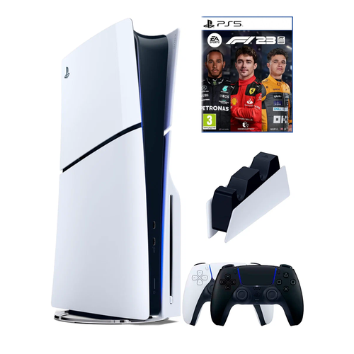 PS5 (ПС5) Игровая приставка Sony PlayStation 5 Slim disk + 2-й геймпад(белый) + зарядное + F1 23( Формула 1)