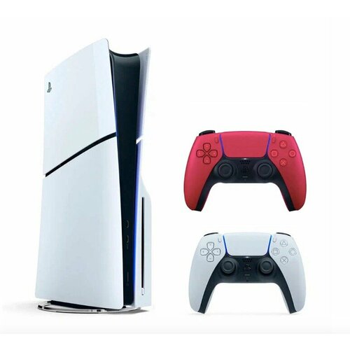 PS5 (ПС5) Игровая приставка Sony PlayStation 5 Slim disk+2-й геймпад(красный), 1000 ГБ