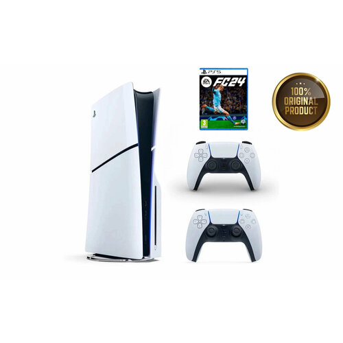 Игровая приставка Sony PlayStation 5 Slim, с дисководом, 1 ТБ, два геймпада, Fifa 24