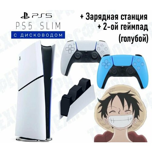 Sony PlayStation 5 Slim, с дисководом, + 2й , голубой геймпад PS5 и зарядная станция