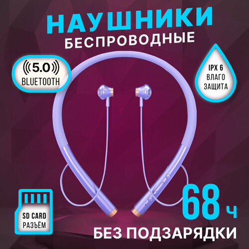 Наушники беспроводные блютуз с микрофоном спортивные для бега на шею (WI фиолетовые)