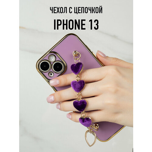 Глянцевый силиконовый чехол на iPhone 13 с цепочкой из сердечек