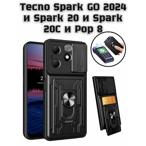Чехол противоударный с картхолдером для Tecno Spark GO 2024 и Spark 20 и Spark 20C и Pop 8 / Техно Спарк ГО 2024 и Спарк 20 и Спарк 20С и Поп 8 (Черный)