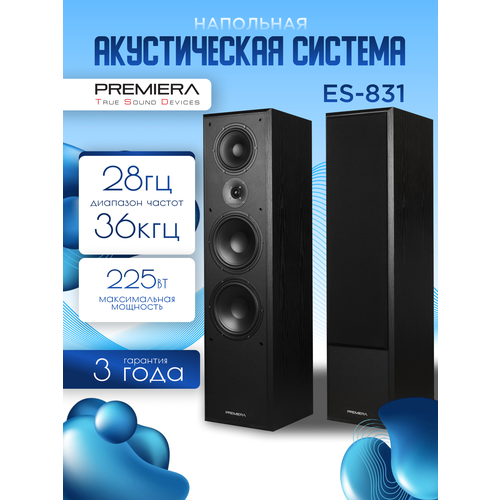 3-полосные напольные колонки с мощностью RMS 125 Вт и PMPO 225 Вт. Premiera ECO ES-831