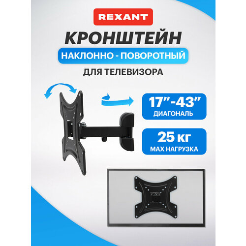 Кронштейн для телевизора настенный поворотный наклонный 37-70 дюймов, 2 колена, REXANT